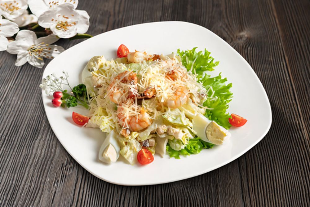Салат Цезарь с креветками