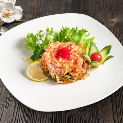 Угорь, огурец, паприка, морковь, салат айсберг, икра масаго, яки соус, унаги соус, кунжут.