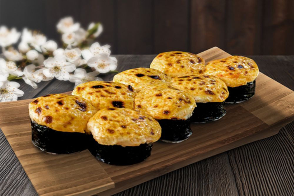 Лосось, снежный краб, сыр Cremette, рис, водоросли нори, яки соус, унаги соус, кунжут.