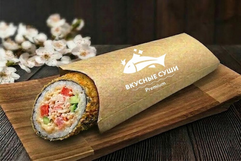 Снежный краб, помидор, огурец (свежий), рис, водоросли нори, сырный соус, кляр темпура.